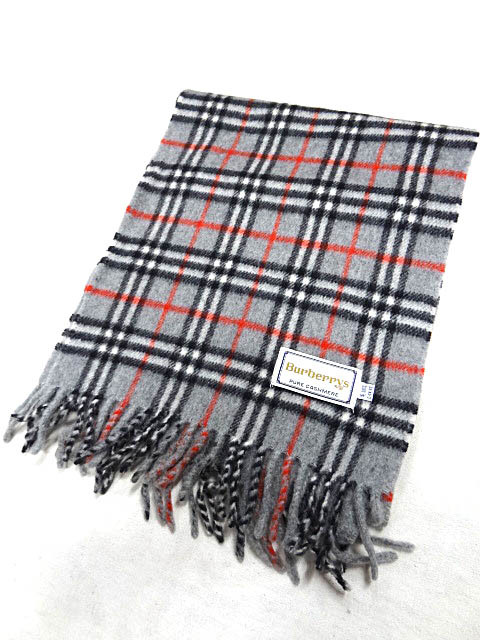 > BURBERRY バーバリー 90S ピュア カシミア 100% チェック 総柄 マフラー ショール ストール 灰 赤 白 黒 色 イギリス 英国 マルチ カラー