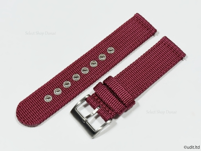 - ラグ幅22mm 分割NATOベルト ストラップ レッド ファブリック 腕時計ベルト 時計用バンド リング ホール ナイロン