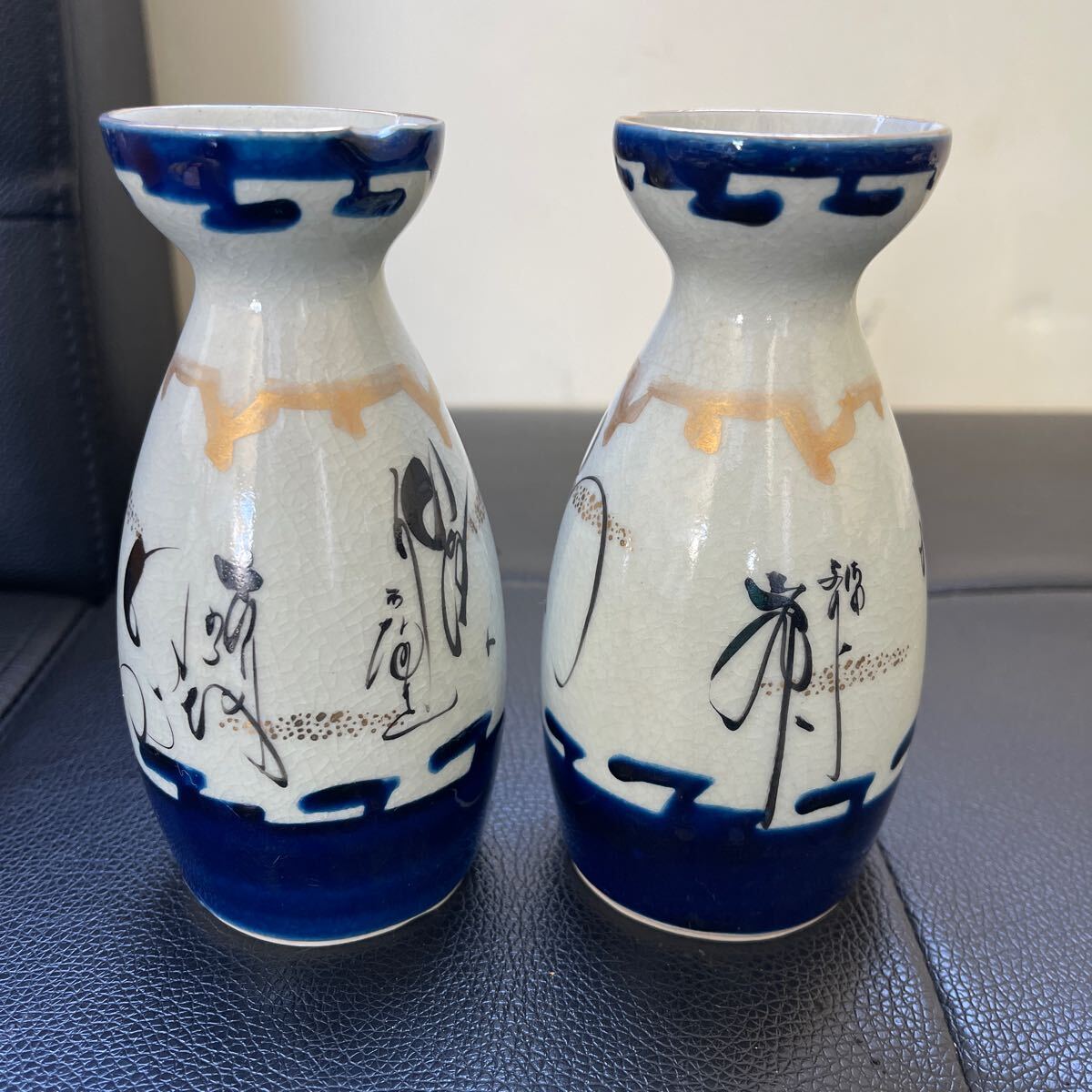 - 九谷 徳利 酒器 染付 一対 レトロ 時代物