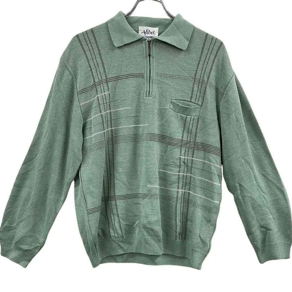 - メンズニット襟付きシャツ 緑 M相当 ハーフジップ シック 春秋冬【1244】