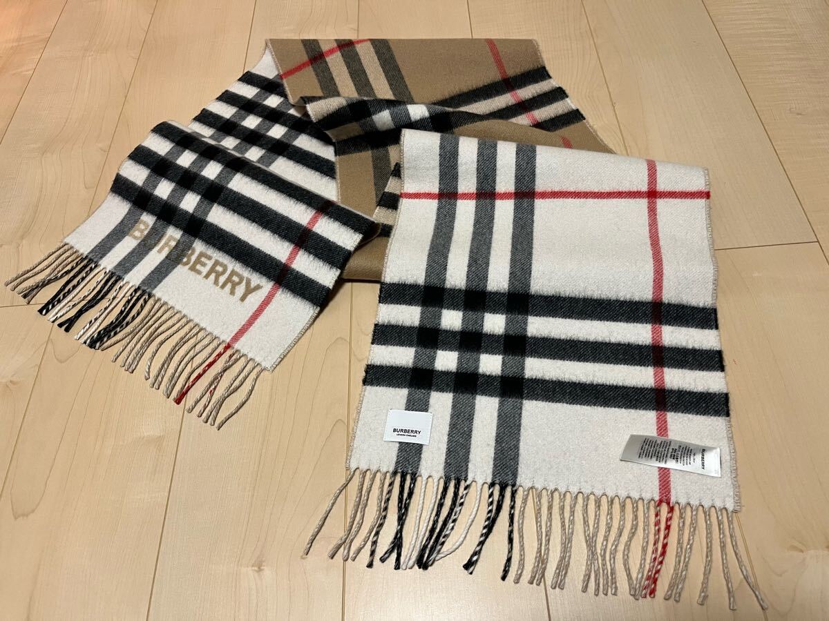 - BURBERRY バーバリー マフラー カシミア100% コントラストチェック 美品 送料無料!!!