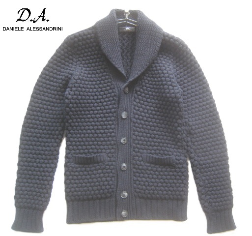 - 極上イタリア製!!ダニエレ アレッサンドリーニ DANIELE ALESSANDRINI*ショールネック ワッフル織りウールニットカーディガン 48 M 紺