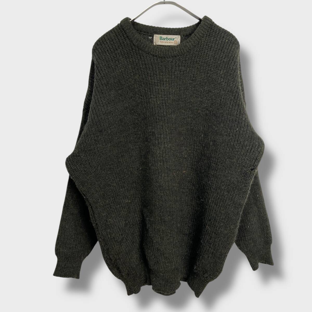 - 送料無料☆Barbour☆バブアー☆90s☆スコットランド製☆ウールニット☆ミックス混☆無地☆カーキ☆C48/122cm☆XL相当☆B25M