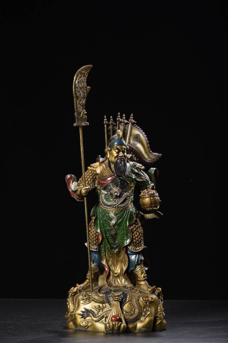 - ▽鴻▽ 銅製 金鍍 彩繪 關公像 置物 古賞物 中国古玩 中国古美術
