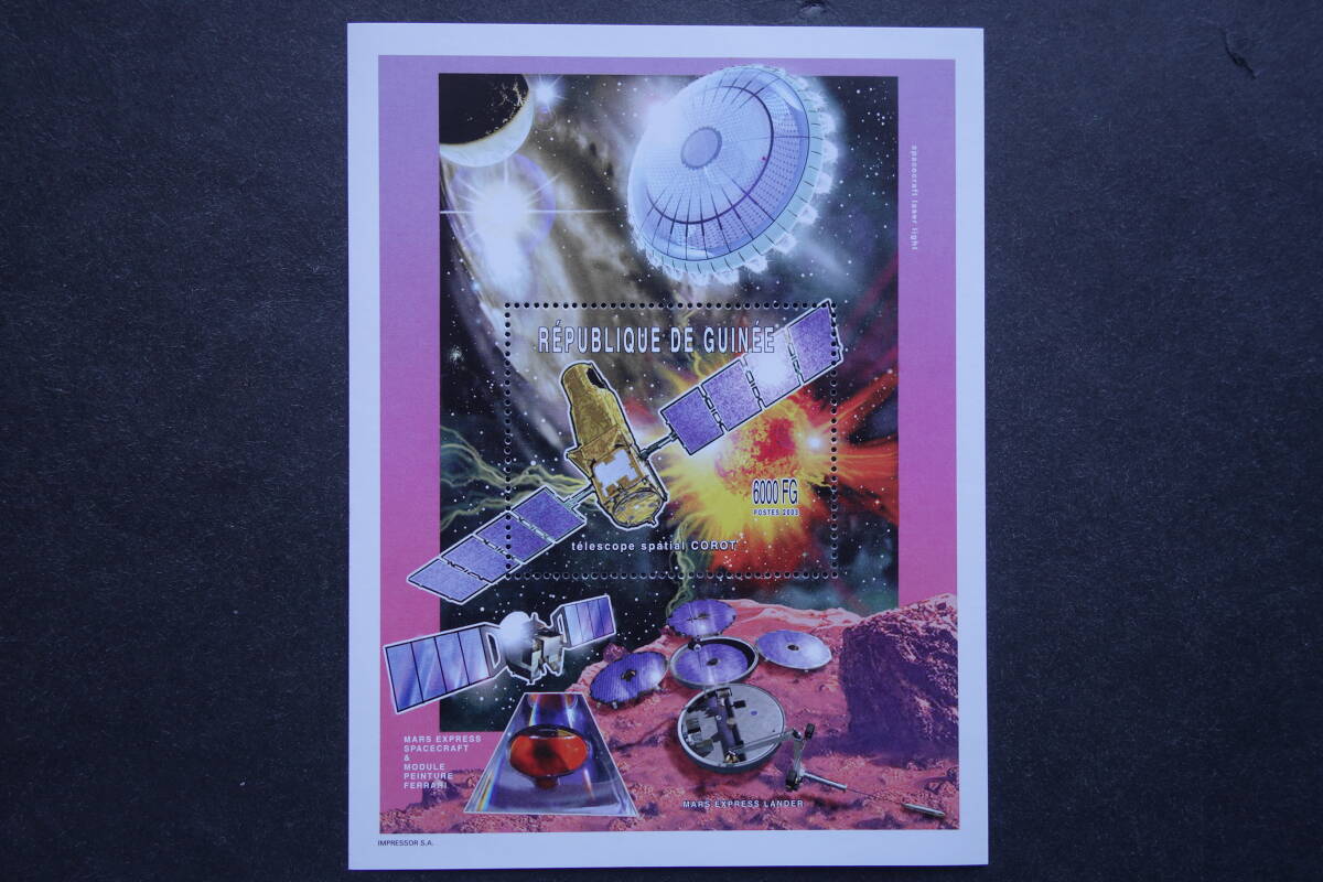 - 外国切手: ギニア切手「宇宙衛星と探査」(コロー宇宙望遠鏡)小型シート 未使用