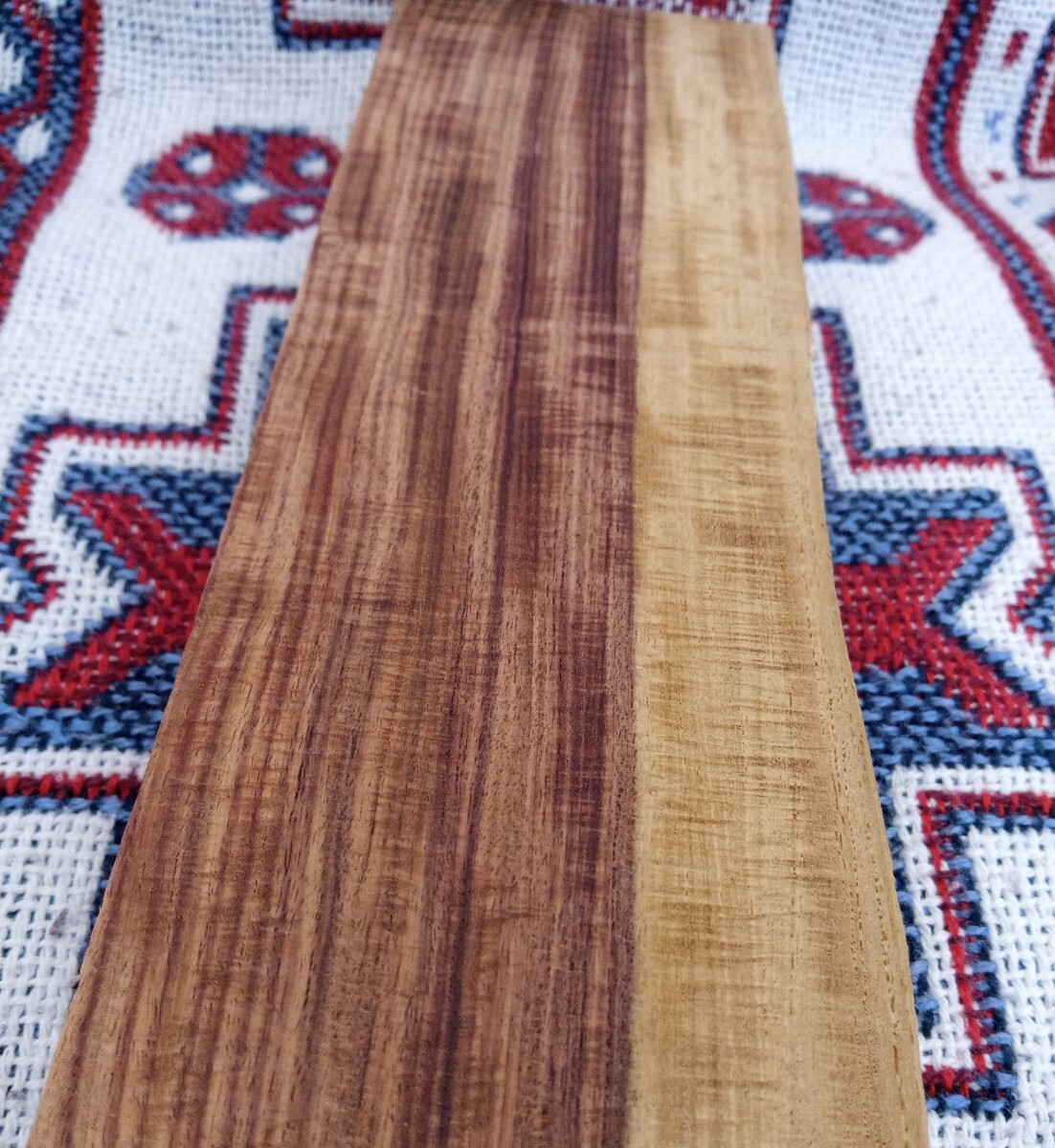 - キングウッド マイクロカーリー 糸縮杢 耳付き板材 ペンブランク ナイフハンドル材 ローズウッド 紫檀