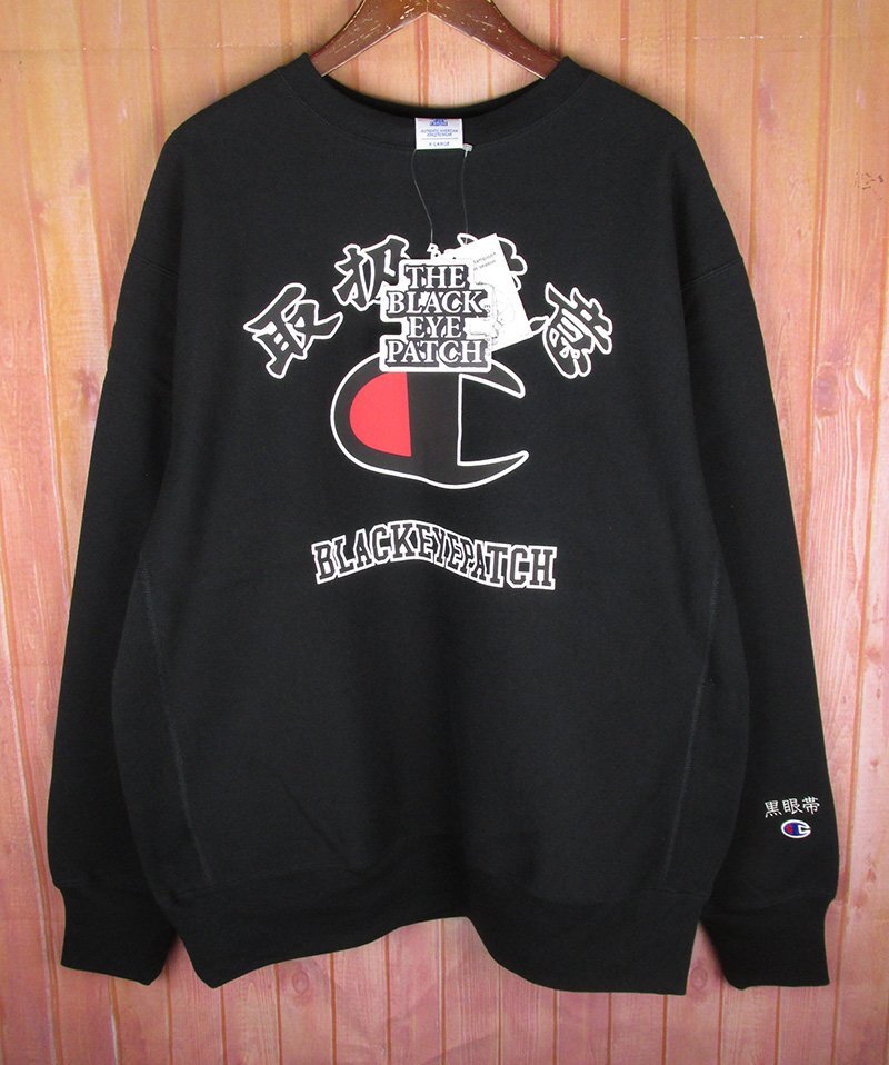 > LFW8818 Champion×BlackEyePatch チャンピオン×ブラックアイパッチ リバースウィーブ スウェット ブラック X-LARGE 未使用