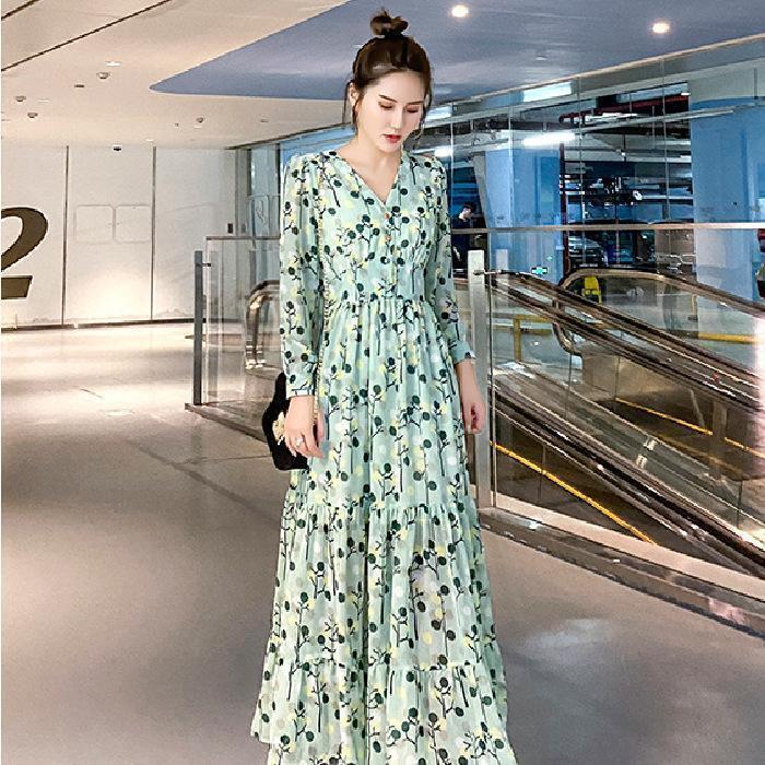 - 【ライトグリーン花柄★Mサイズ】レディース ロングワンピース