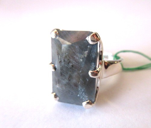 ミルキーグレーの大きなサファイアです。透明感がないようですが、裏からライトを当てますと透過性があります。約13.4ct。NH