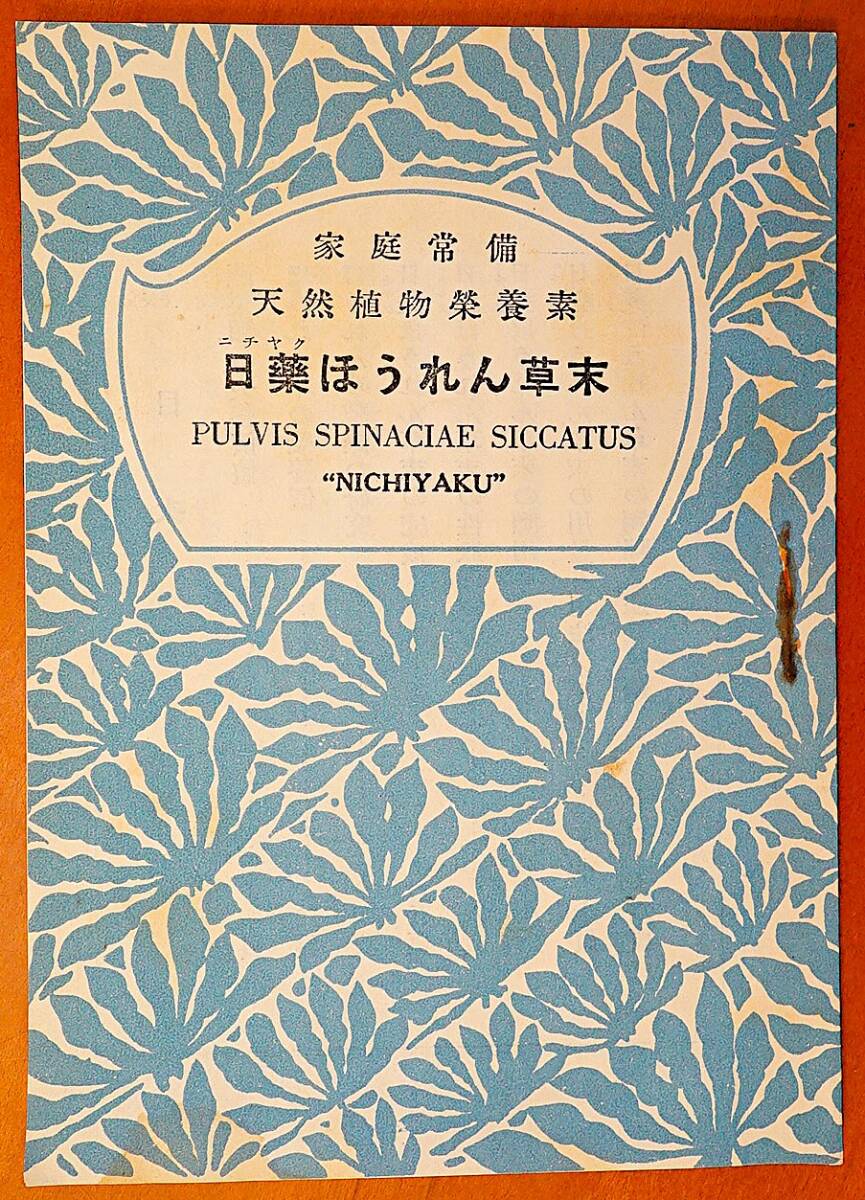 - 日薬ほうれん草末 家庭常備 天然植物栄養素 (株)日本薬品洋行発行1冊 検:粉末ほうれん草 ホウレンソウ粉末 料理用量用法 ビタミン栄養価