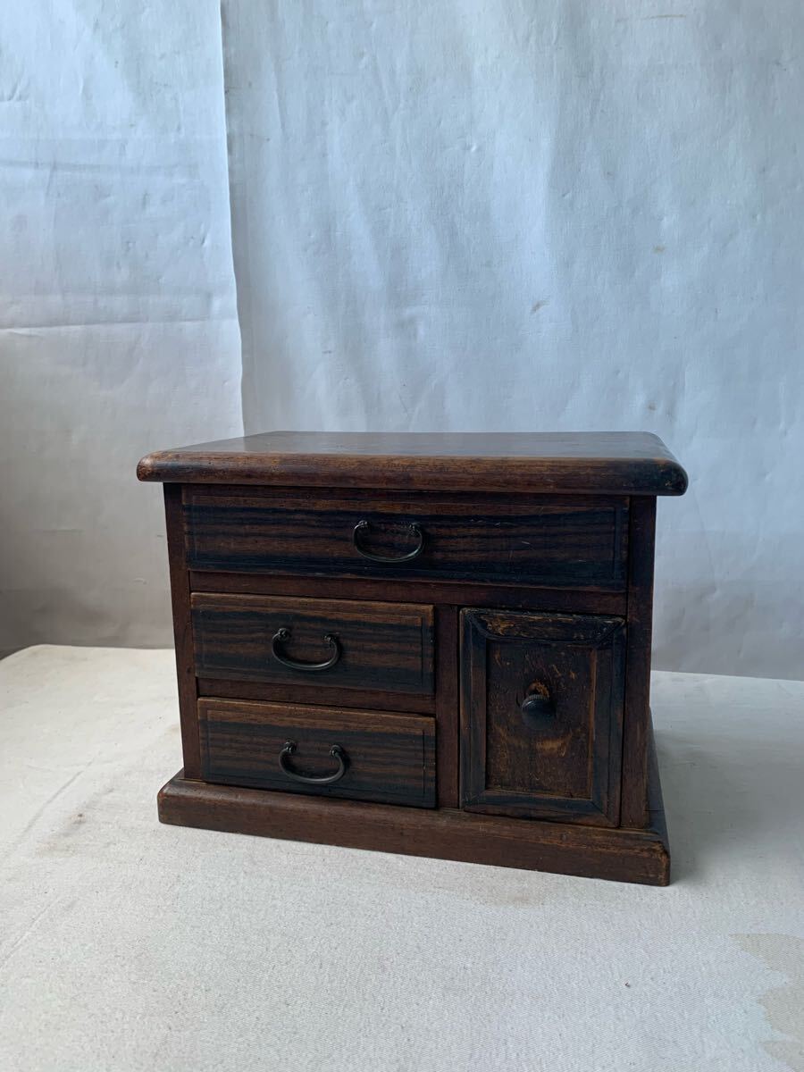 - 引き出しに黒柿が使われた4杯木製ケース 小物入れ展示台収納道具箱ビンテージアンティーク古道具インテリアディスプレイ無垢材昭和レトロ