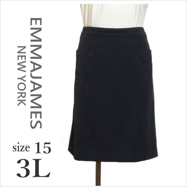 > 〔EMMA JAMES〕濃紺膝丈セミフレアスカート エマジェイムス レディース 通勤 行事 ゆったりサイズ 15 ウエスト73 *送料込み