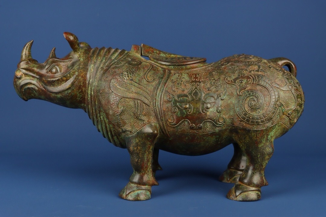 - 【仁】『西周・青銅製・犀牛尊・置物・賞物』極細工 古賞物 中国古玩 古美術 古美味