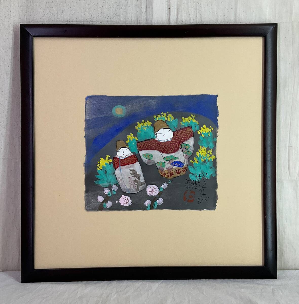 - 【真作】《墨彩画》渡辺俊明 雛図 額装 民画家 静岡 ひな祭り 節句 お雛様