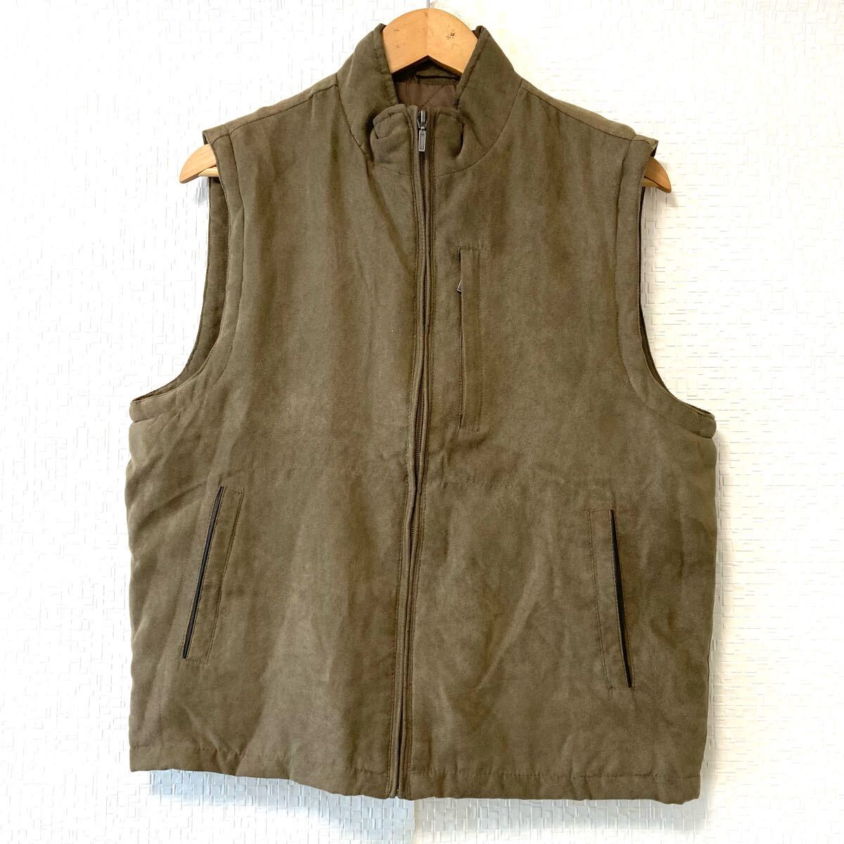 > 美品◎ スエード調!【vest jacket】 ベスト ジャケット スタンドカラー 中綿入り 古着 アメカジ アウトドア ブラウン メンズ L/Y25888UU