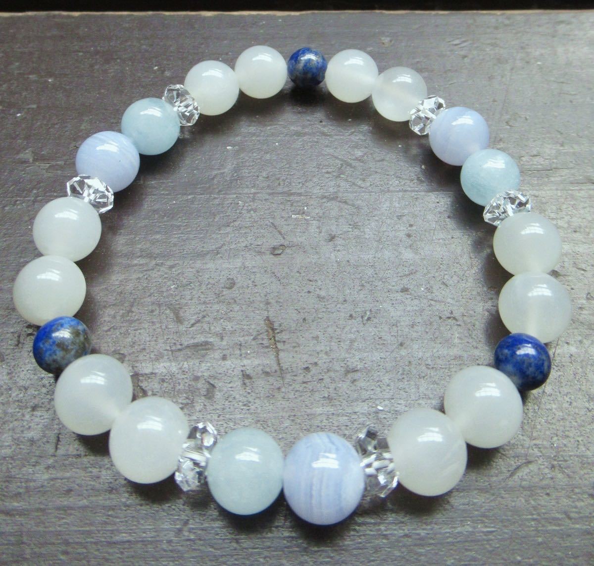- アクアマリンxブルーレースxムーンストーンxラピスラズリブレスレット 天然石 パワーストーン