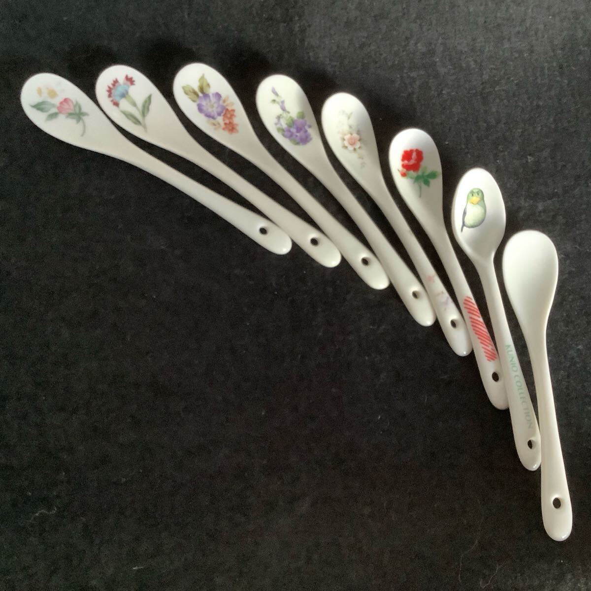 - 陶製 スプーン 8本 花柄 鳥 無地 ホワイト