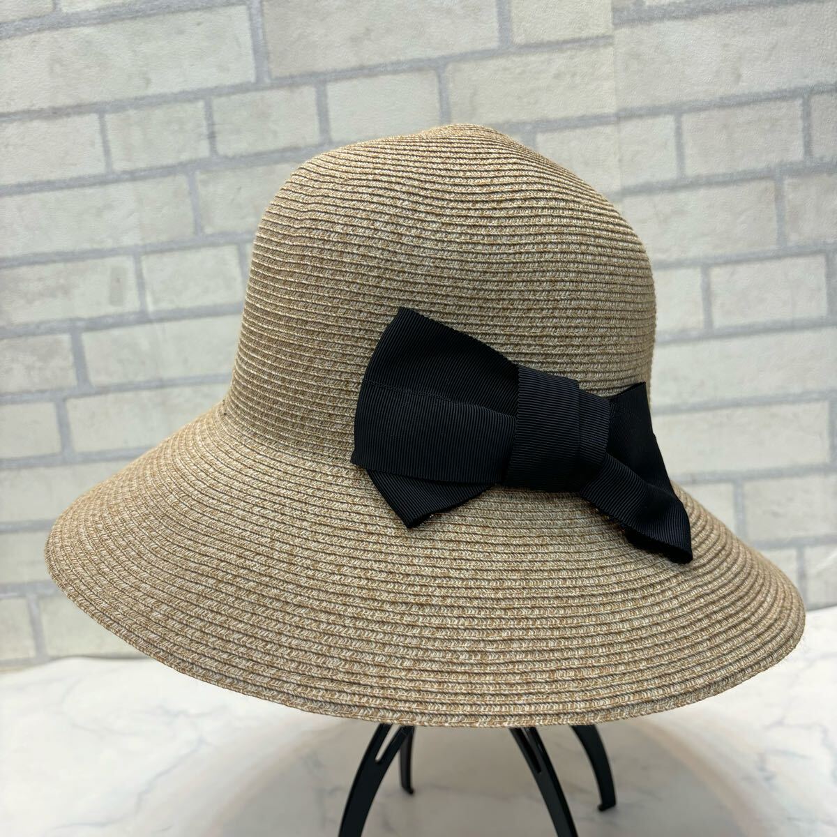 - 未使用 オーロラ 57.5㎝ ハット 麦わら帽子 ストローハット ベージュ レディース リボン ポリエステル100%