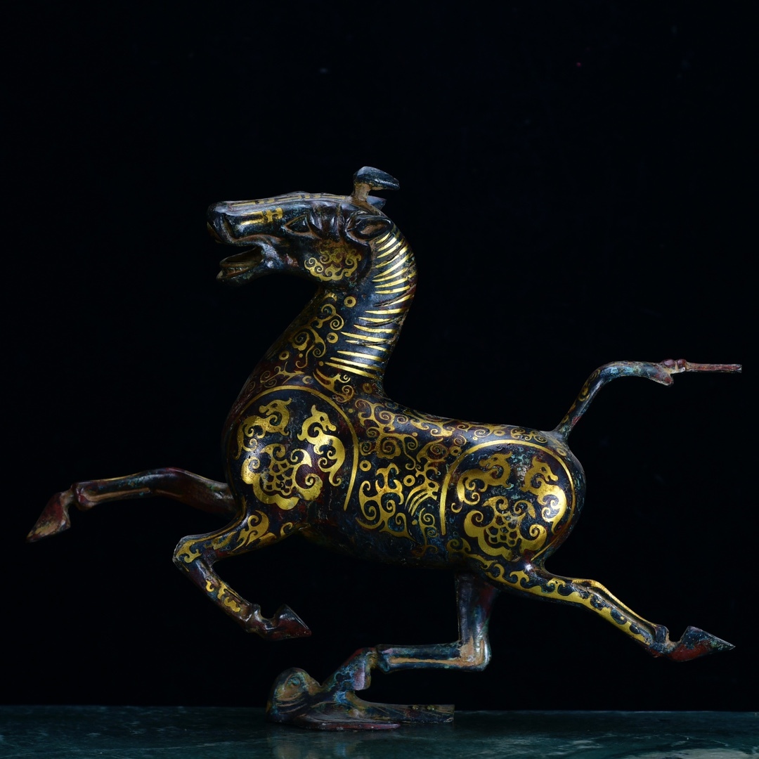 - 『漢末三国志時期・館蔵珍品・古青銅錯金彫・青銅器・馬踏飛燕・文案置物』極細工・東洋彫刻・骨董品・古賞物・中国古玩・中国古美術