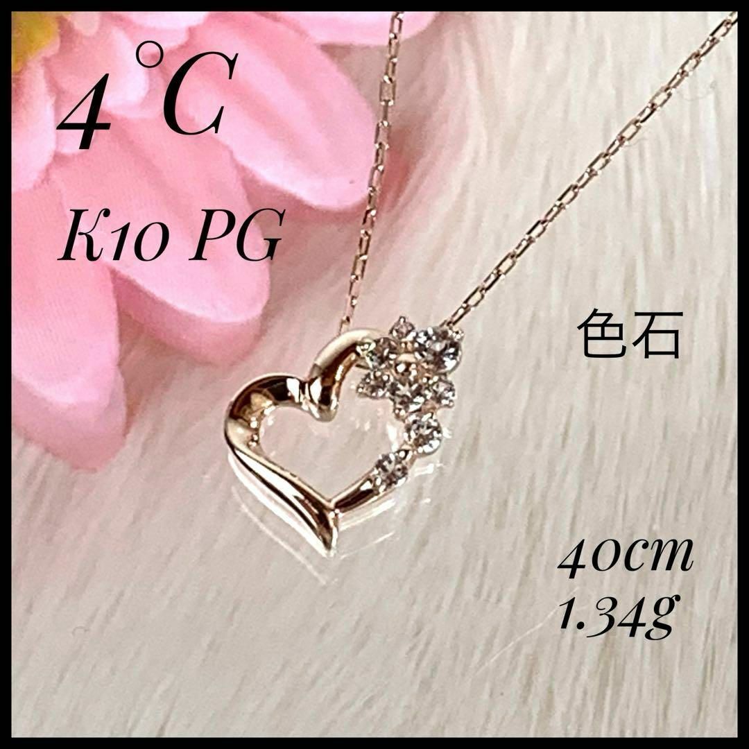 - 4°C ヨンドシー K10 PG 色石 ハート 花びら ネックレス 1.34g