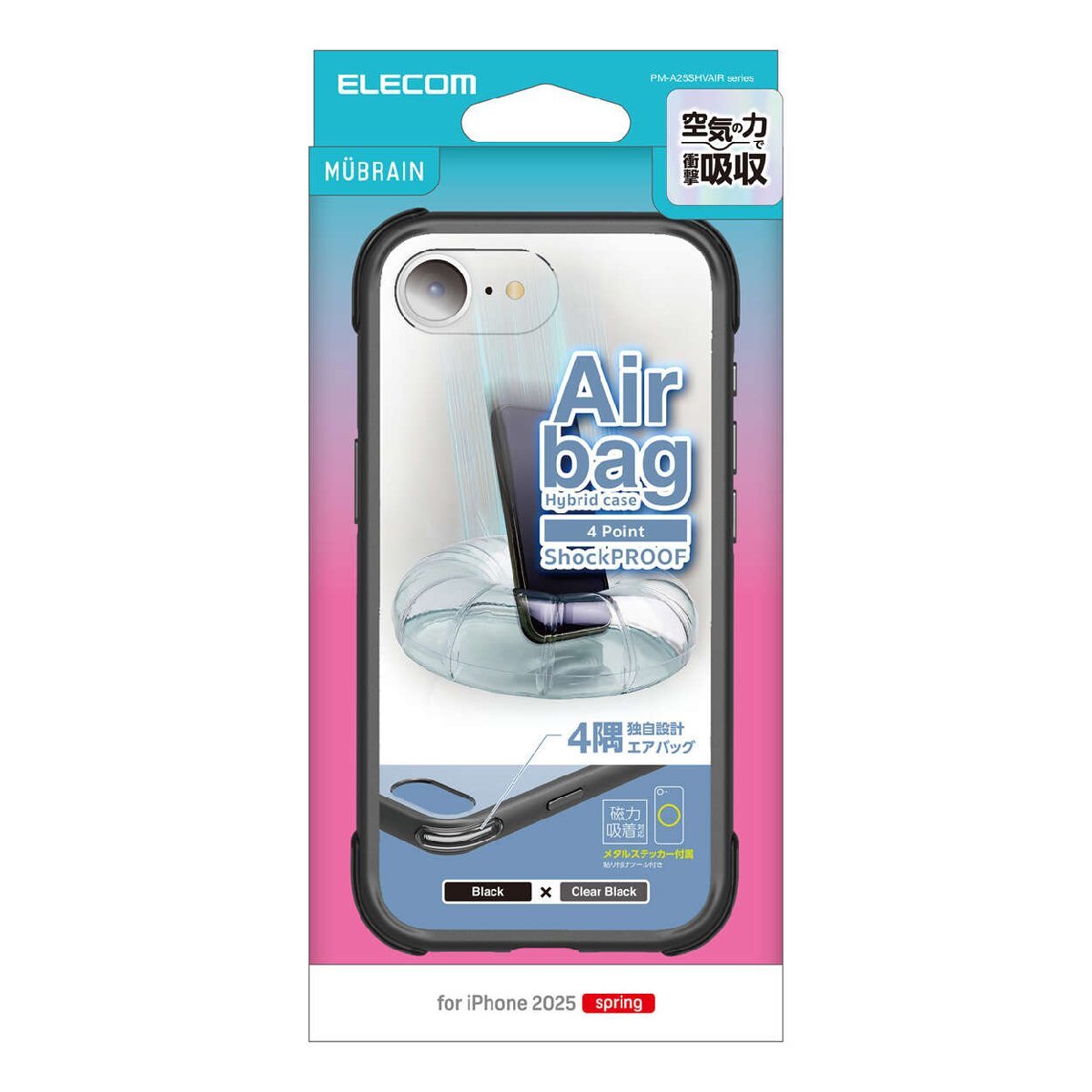 > iPhone16e用ハイブリッドケース [MUBRAIN] 4つの角に配置した独自設計のエアーバッグが衝撃を吸収: PM-A25SHVAIRBK