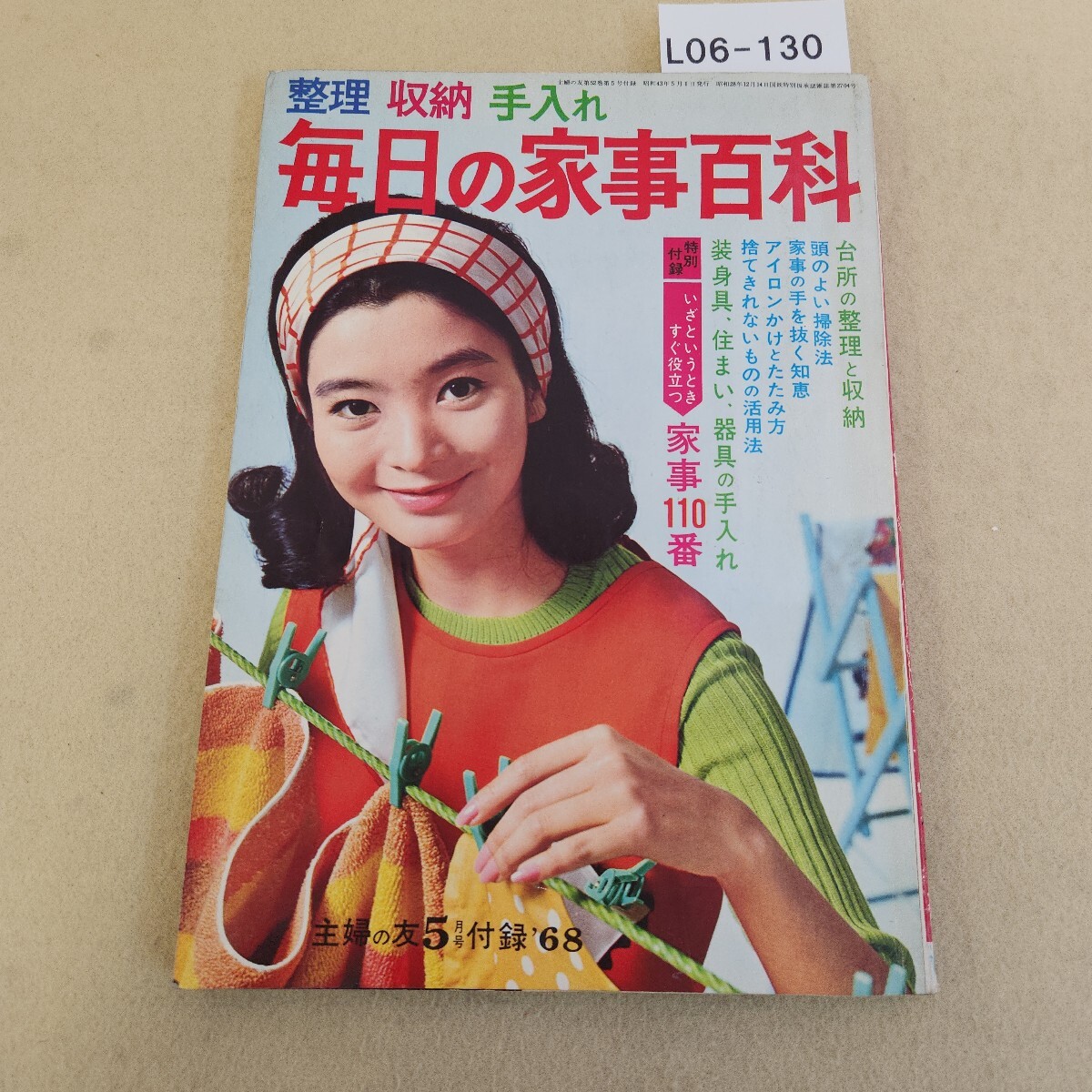 > L06-130 整理・収納・手入れ 日の家事百科 1968.5月号付録本 主婦の友第52巻第5号 特別付録欠品 全体に傷み・破れ有 テープ補修有