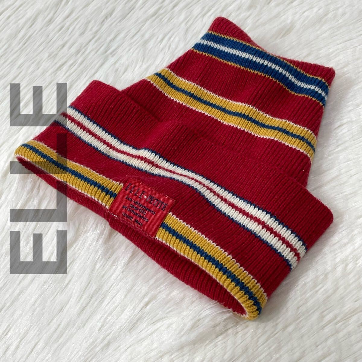 - ELLE エル ロゴ ワッペン ボーダー ウール混 ニット帽 帽子 レッド ホワイト イエロー ネイビー CP092
