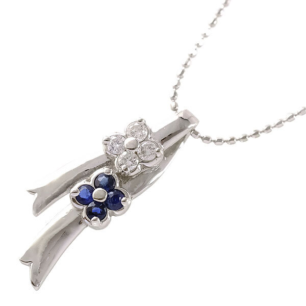 - 送料無料 本物 サファイア ダイヤモンドネックレス K14WG ホワイトゴールド レディースペンダント お花 おしゃれ 可愛い
