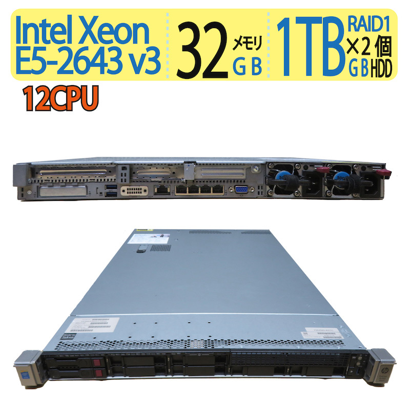 > 【サーバー】◆HP Enterprise ProLiant DL360 Gen9◆E5-2643 v3 高性能12CPU/高速1TB×2 HDD 【RAID1】/メモリ32GB◆win Server 2019