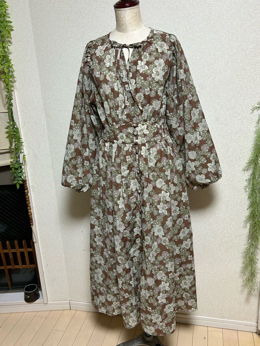 > 未使用【FREAK'S STORE★フリークスストア】花柄フロントボタンマキシ丈ワンピース・透け感・裏地無し・Fサイズ