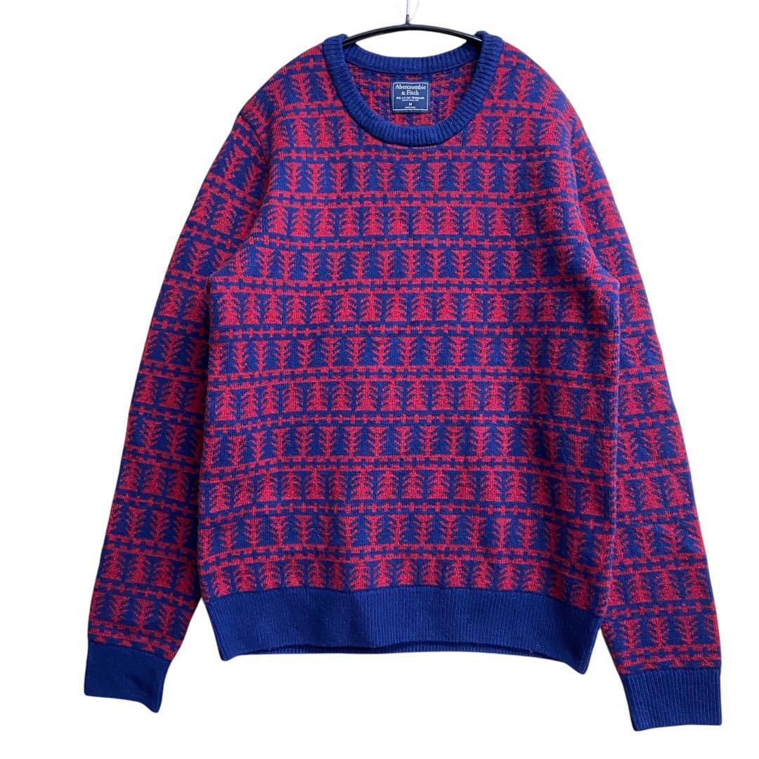 - アバクロンビーフィッチ メンズニット セーター 赤×青 ウール混合【2010】