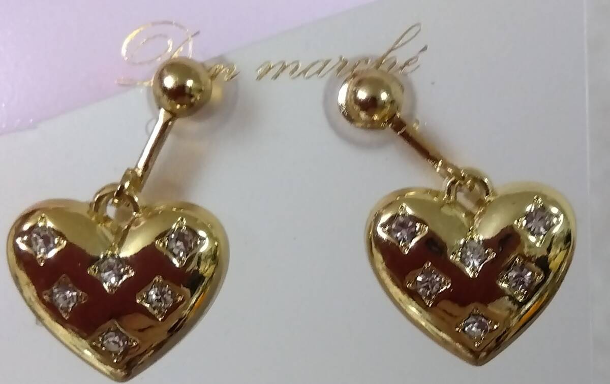 > 未使用品☆可愛い!ハートのイヤリング☆誕生日、ホワイトデーのお返しにも!デート ビジューがアクセント!988円ほどで神戸購入台紙付