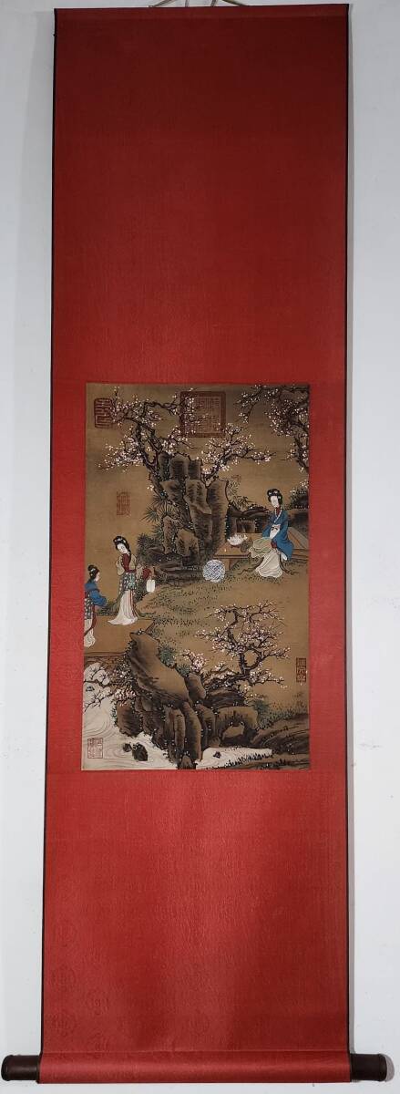 - 中国書画 掛け軸 中国・清時代 陳枚書「仕女図立軸」絹本立軸 書道巻物 真筆逸品 肉筆保証 唐物 古画 LOT-022311