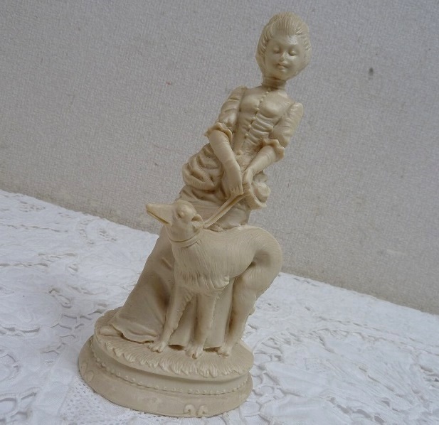 - (☆BM)イタリア製/ITALY 犬を連れた貴婦人 女性像 高さ20.5㎝ 400/691 樹脂製 中世ヨーロッパ調 置物 アンティーク調 レトロ オブジェ 人形