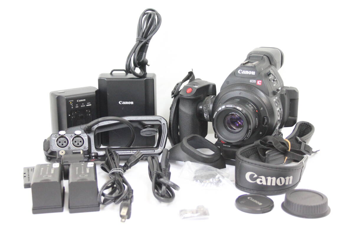- 【返品保証】 キャノン Canon EOS C100 Mark II + 50mm F1.8 II その他 バッテリー2個 32GB SDカード2枚 チャージャーなど付属品多数 M3433