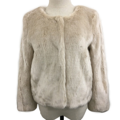 - ジルバイジルスチュアート JILL by JILLSTUART ジャケット ノーカラー シングル フェイクファー 無地 長袖 S ベージュ レディース
