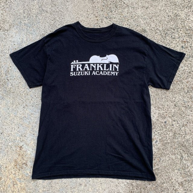 > 【M/L】フランクリンスズキアカデミー プリントTシャツ ブラック 黒■ビンテージ オールド レトロ アメリカ古着 コットン バイオリン