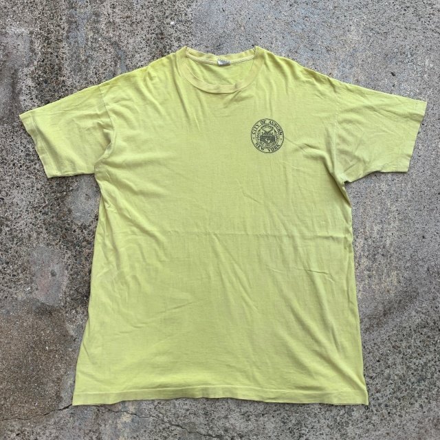 > 【XL】90s USA製 コットン プリントTシャツ 黄色■ビンテージ オールド アメリカ古着 シングルステッチ フルーツオブザルーム イエロー