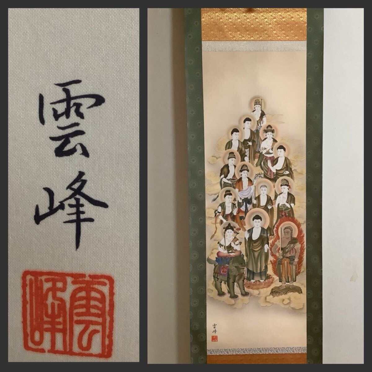 - 【模写】掛軸Fe7110[清水雲峰 十三仏]絹本 工芸 印刷/仏画 仏教美術 仏事 法要 法事 観音菩薩 普賢菩薩 勢至菩薩 不動明王