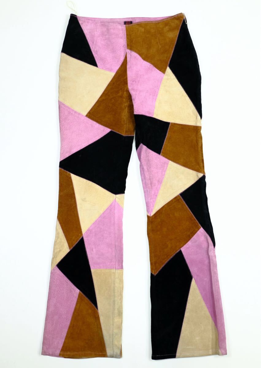 - 1970s フランス製 ビンテージ レザーパッチワークフレアパンツ 古着屋 カラフル アート ユーロ デザイン