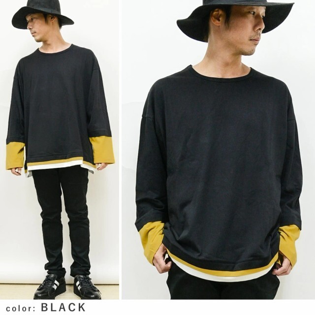 - ルーズシルエット フェイクレイヤード 長袖Tシャツ rv8021 メンズ 長袖Tシャツ 新品 ブラック L