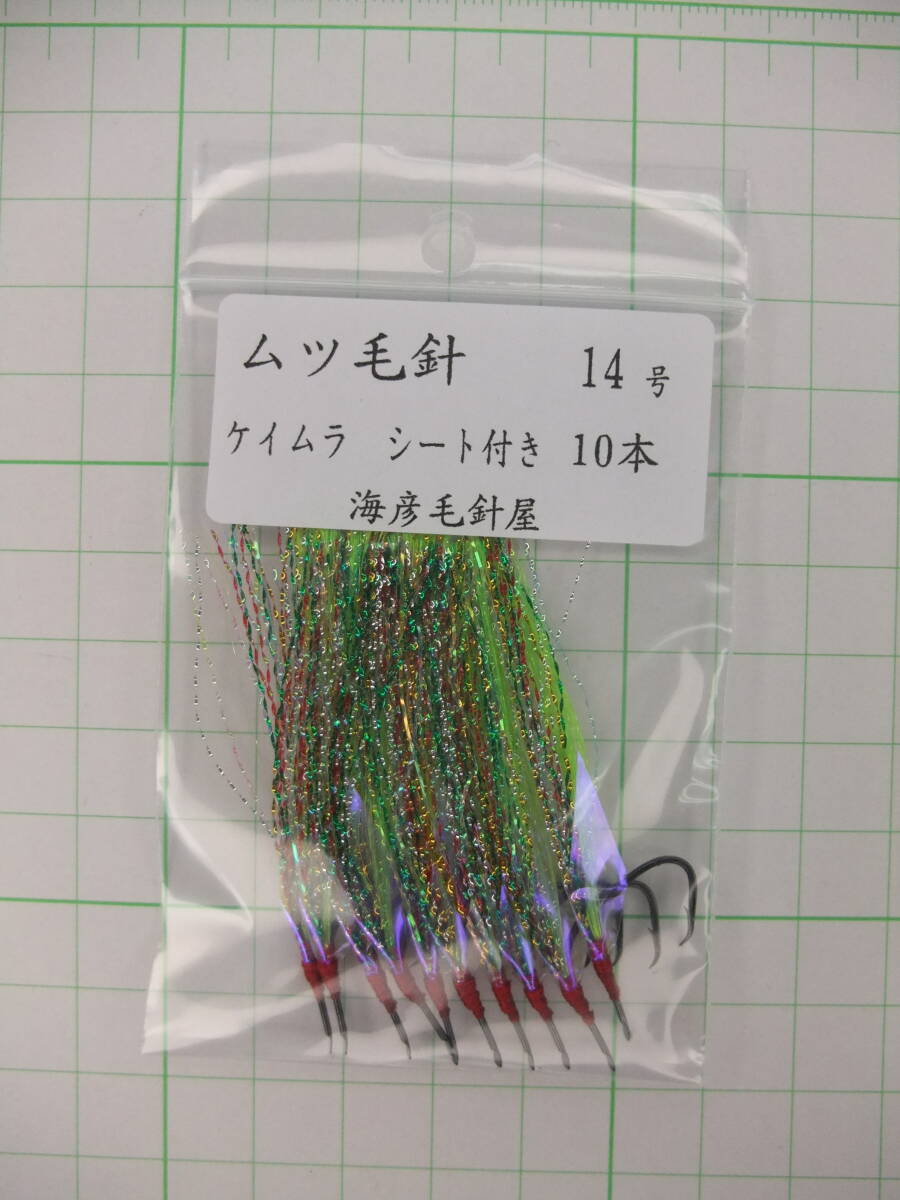 - 14WK ムツ14号毛針 若草フラッシャー ケイムラ シート付き 10本セット