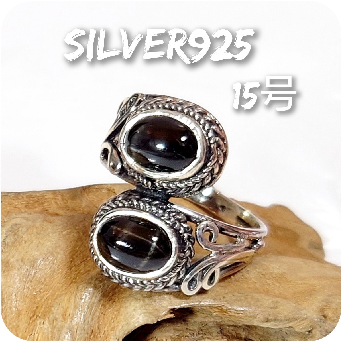 - 4880 SILVER925 2石 ブラックスターリング15号 シルバー925 天然石 アラベスク スネーク 十字四条光 ヴィンテージ ハンドメイド 透かし彫り