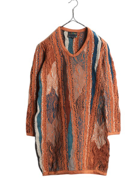 > 90s オーストラリア製 COOGI 3D 立体編み デザイン ニット ワンピース レディース S / オールド コットン Vネック ミニ丈 チュニック 総柄