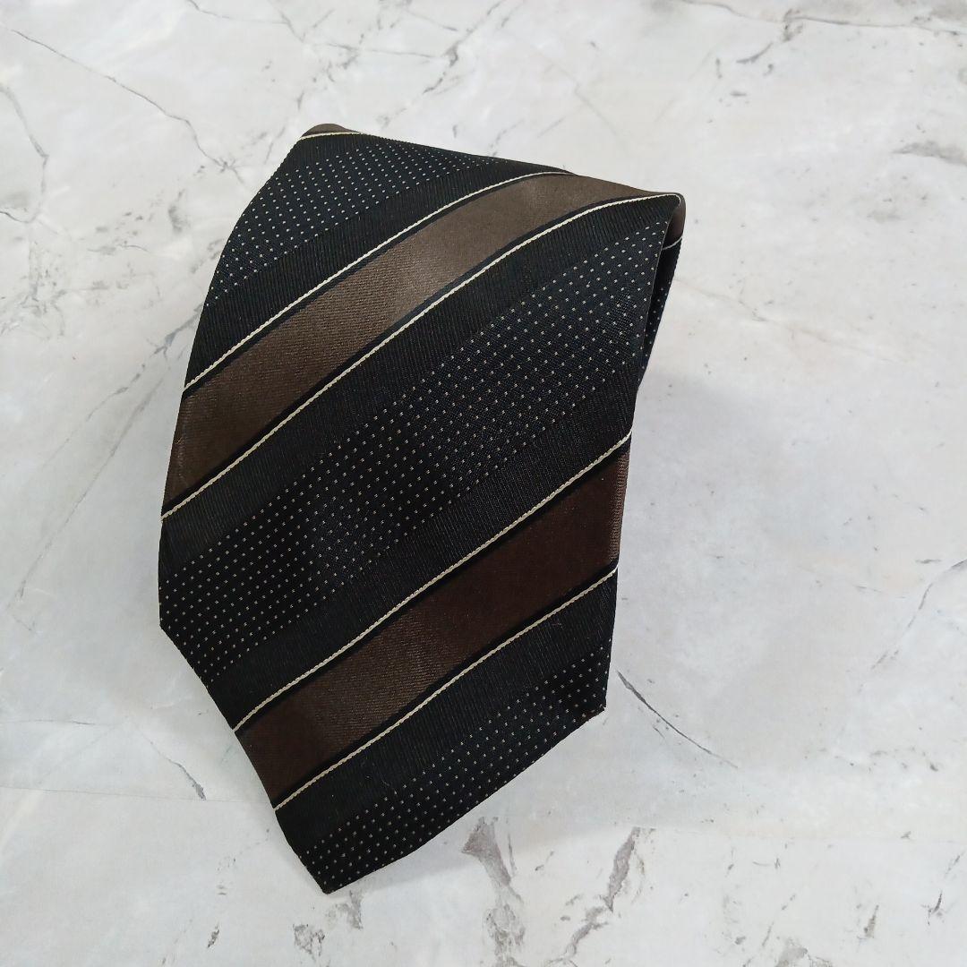 - シップス ネクタイ 茶 黒 ストライプ柄 リネン【n358】