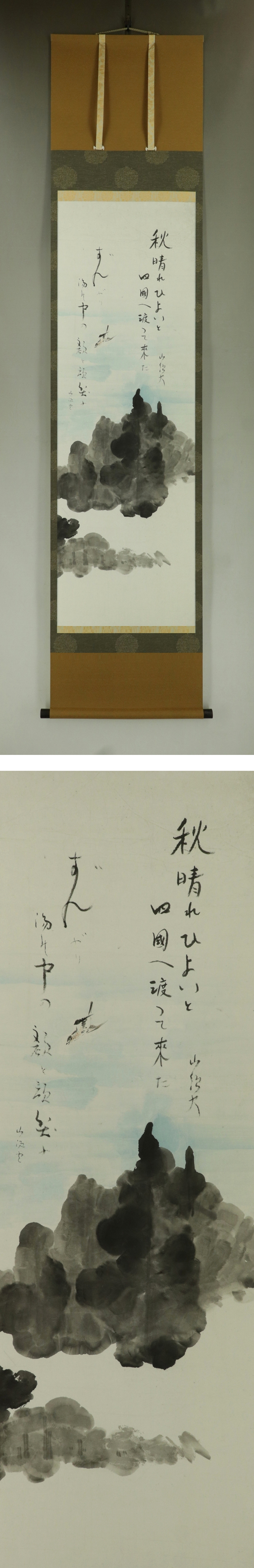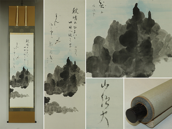 - 【模写】種田山頭火【秋晴れ画賛】◆紙本◆識箱◆改装済掛軸 s09066