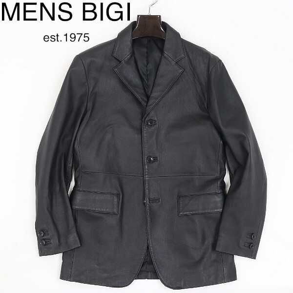 - ◆RadmesS MEN'S BIGI メンズビギ ラムレザー 羊革 3釦 ジャケット 黒 ブラック S