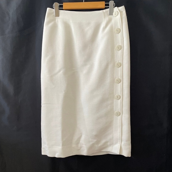 > #anc ジュンコシマダ JUNKOSHIMADA 49AV スカート 40 白 麻混 ボタン レディース [935591]