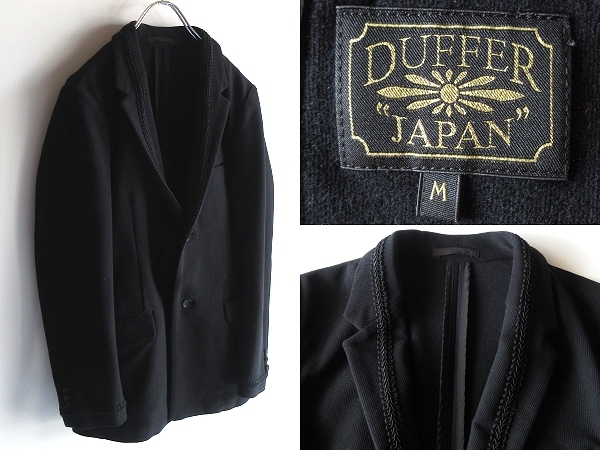 - The DUFFER of St.GEORGE ザダファーオブセントジョージ 刺繍テープ ストレッチジャージー 2Bテーラードジャケット ブレザー M 黒 ブラック