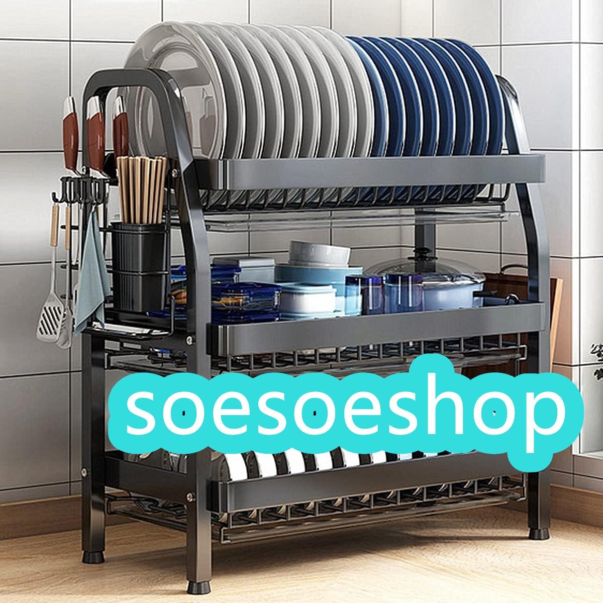 - 実用 食器 水切りかご 大容量 収納 ラック おしゃれ 箸立て 包丁スタンド まな板立て 台所用品ホルダ 収納棚 (3段 ブラック)